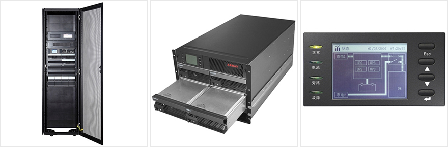 1、ARRAY MP UPS可以为用户提供将UPS单元、电池单元、配电单元、防雷单元和监控单元等模块集成在一个机柜里的电力解决方案。