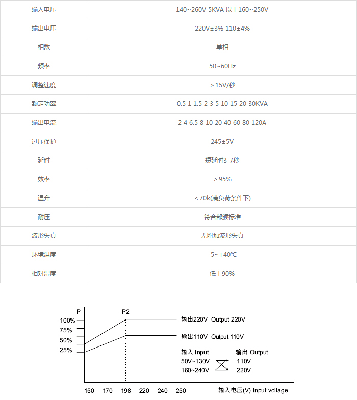 SVC系列单相高精度全自动交流稳压器是由接触自耦调压器、伺服电动机、自动控制电路等组成。当电网电压不稳或负载变化时自动采样,控制电路发出信号驱动伺服电机,调整自耦调压器碳刷的位置,使输出电压调整到额定值并达到稳定状态。本仪器体积小、重量轻、输出波形失真小、性能可靠、可长期运行等特点,设有过压保护功能,根据用户需要,可设欠压、延时等保护功能。可广泛用于任何用电场所,是一种理想的稳压电源。