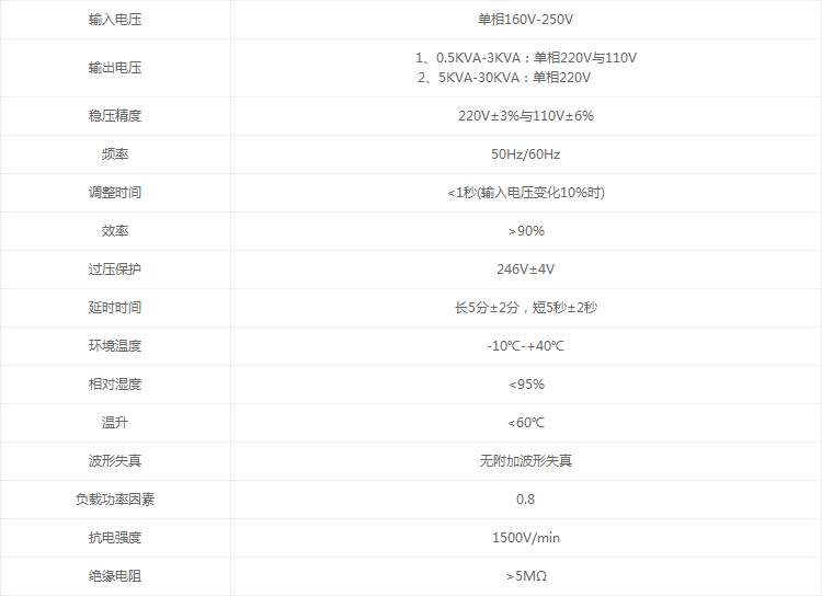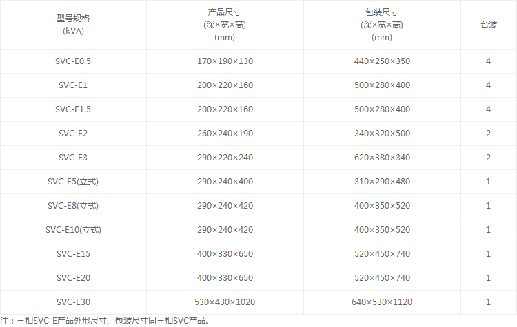 SVC-E(数显式)系列单相稳压器是采用数码显示技术,本稳压器能自动显示延时时间,输出电压,保护状态等,本稳压器还具有延时保护,过压、欠压保护、自动报警全方位保护等优异特点。(注:2KVA及2KVA以上产品不仅有延时、过、欠压等保护,且有市电直通功能)