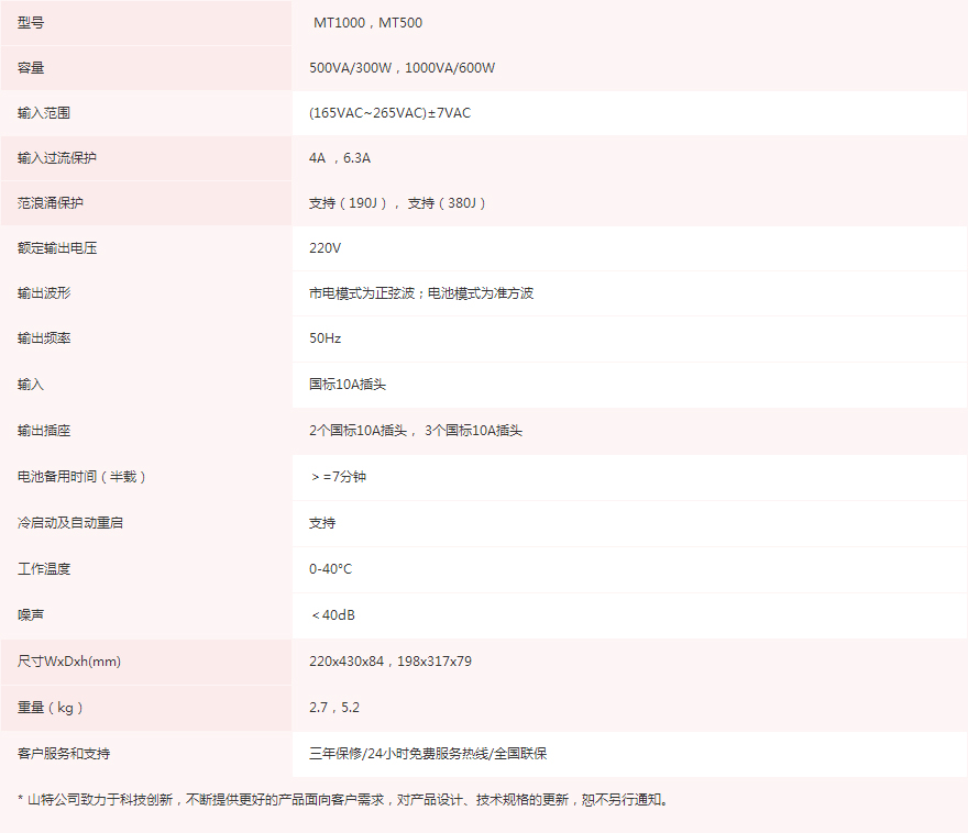 为了满足不同用户对UPS后备时间需求, MT系列分为三种型号:标准型、延时型和长效型。