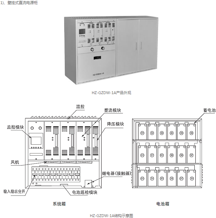 壁挂式直流电源柜HZ-GZDW-1A、小型直流电源柜HZ-GZDW-1B是专为小容量用户设计的直流电源。系统配置由监控模块、整流模块、降压模块、电池巡检模块、配电单元、蓄电池、柜体组成,具有体积小、结构紧凑、壁挂安装、不占场地、操作简单、智能管理、高效节能等特点。